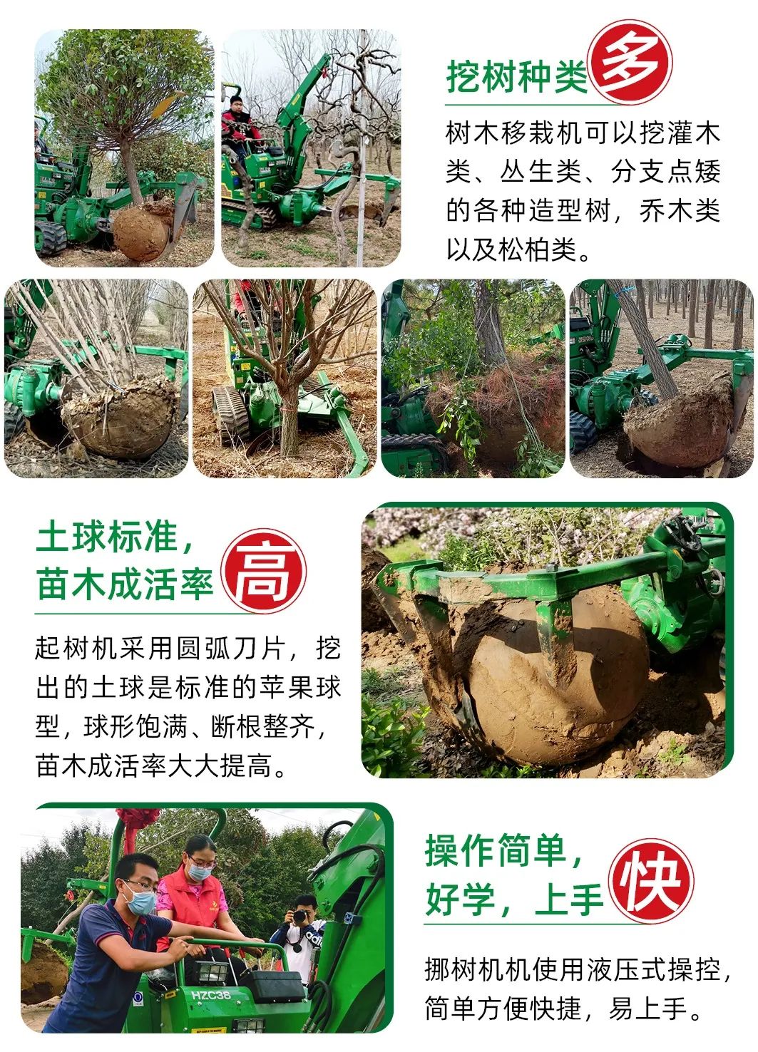 5、好馬克91香蕉视频APP污挖樹種類多,分枝點低的喬木、花灌木、叢生類、鬆柏類都可以使用好馬克91香蕉视频APP污。6.挖樹土球範圍廣。直徑40--140cm的土球都可挖,通過換刀片來實現不同土球大小的作業。此範圍基本滿足國內多數苗圃的挖樹需求。7.91香蕉视频APP污體積小,自重兩噸,寬度1-1.4米可自行調整,傳統苗圃兩米以上的行間距就可進行機械化苗木移栽。這有助於傳統苗圃的升級改造。8、老弟挖樹聯盟的服務完善。聯盟擁有自己的91香蕉视频APP污,可以及時地為客戶進行挖樹,而且香蕉视频下载链接擁有一支熟練的90後挖樹團隊,他們可以根據地形、苗木種類等因素,為您設計一套省時省力省錢的挖樹方案。